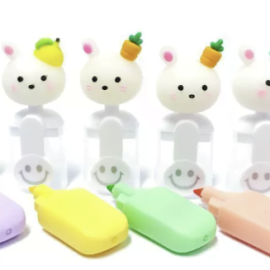 O conjunto de marca texto possui as cores: amarela, laranja, verde, rosa e roxo.