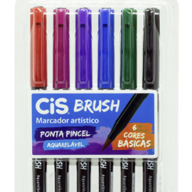 Estojo Marcador Artístico CIS Ponta Pincel Aquarelavél Brush 6 Cores Básicas